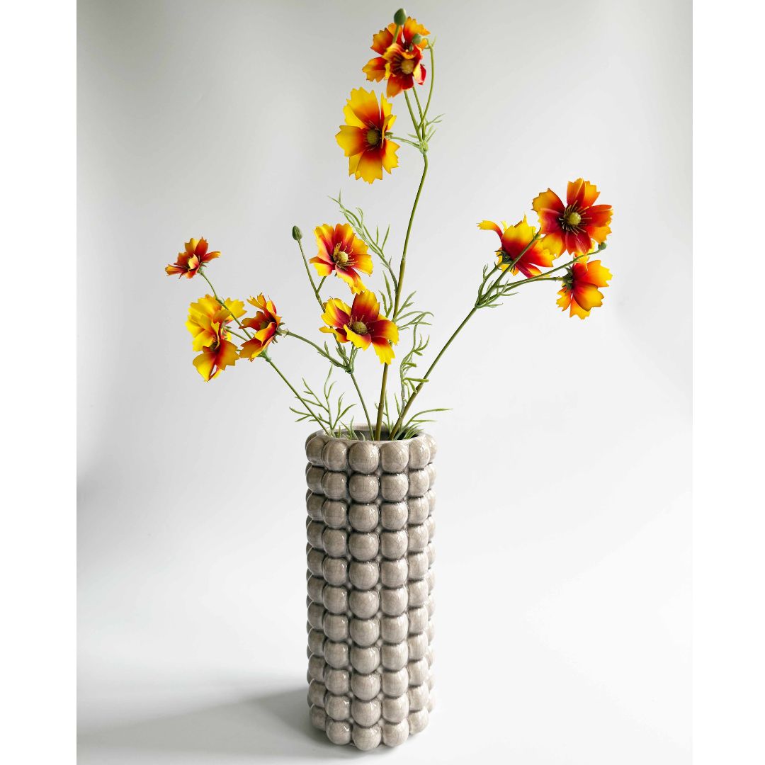 Deze vaas met bolletjesstructuur is echt een eyecatcher 🤍